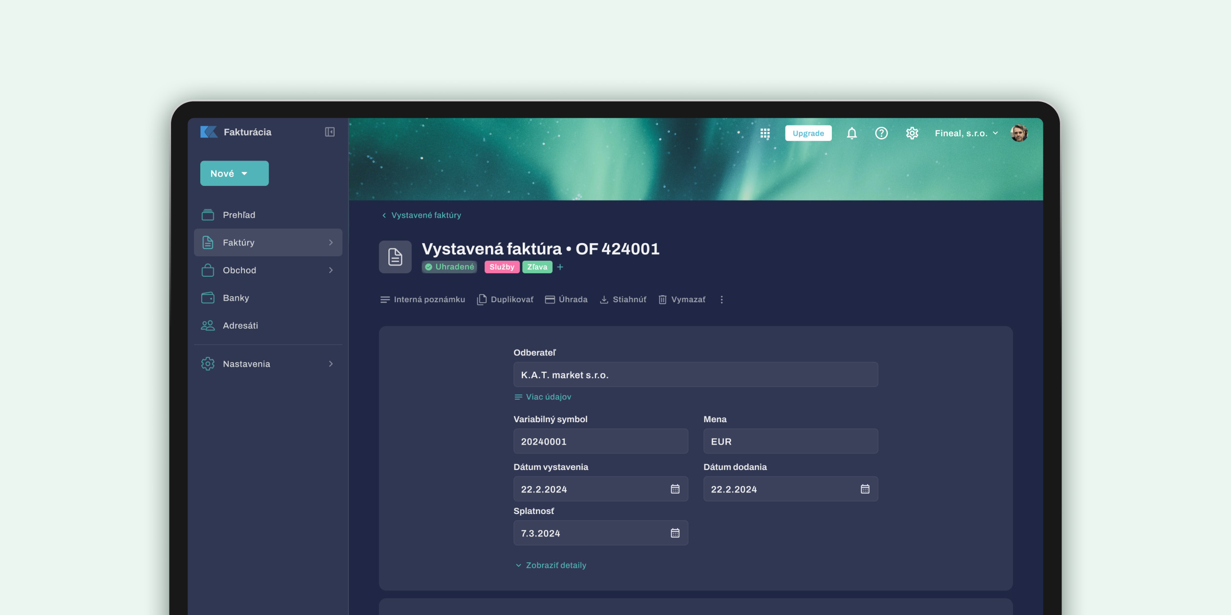 Moderný vizuálny jazyk pre KROS Fakturáciu. Prehľadný layout, konzistentné UI vzory a plná personalizácia pre špičkový zážitok z fakturácie.