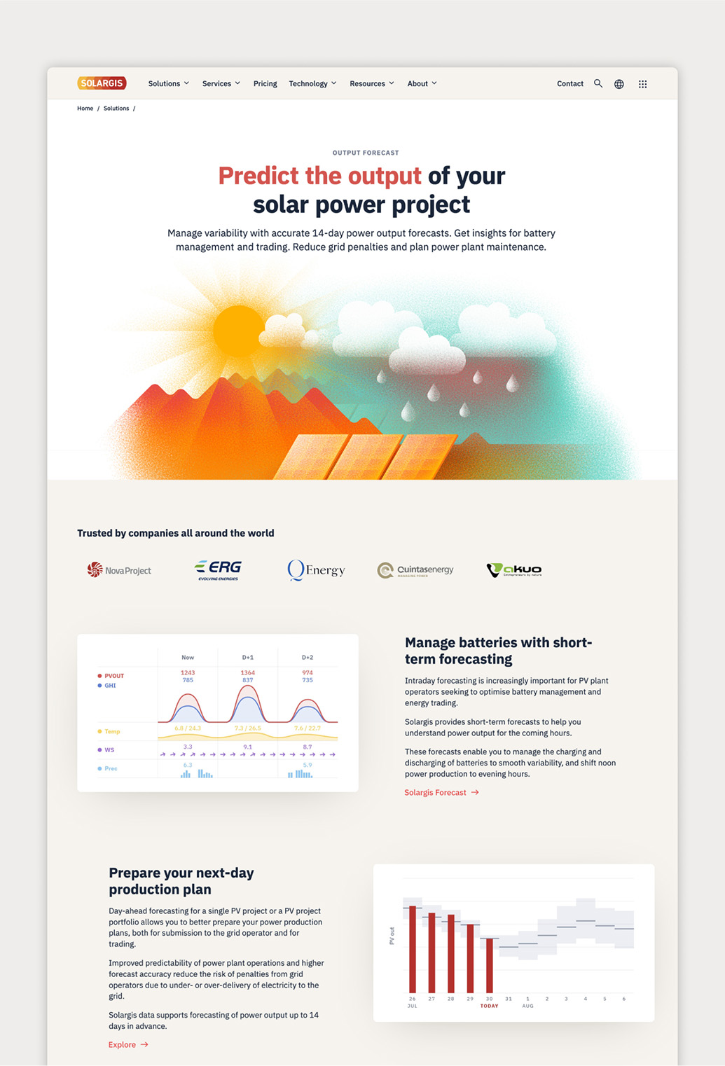 Ako odlíšiť Solargis od konkurencie, ktorá na prvý pohľad ponúka to isté? Odpoveď spočíva v sebavedomej vizuálnej čistote, ktorá dáva vyniknúť odbornému obsahu, presnosti a unikátnej implementácii dát.